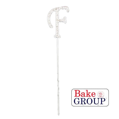 Diamante encrusted 'Letter F'. Approximately 4.0cm (Excluding spike). Other designs available - 7cm Numbers & Letters"," 4cm Letters"," bows"," baby feet"," happy birthday"," double heart.