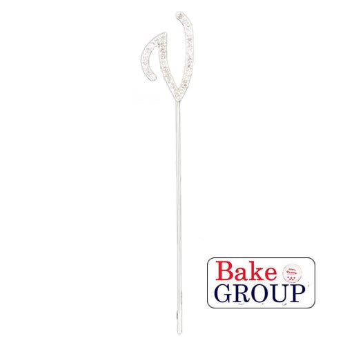Diamante encrusted 'Letter V'. Approximately 4.0cm (Excluding spike). Other designs available - 7cm Numbers & Letters"," 4cm Letters"," bows"," baby feet"," happy birthday"," double heart.