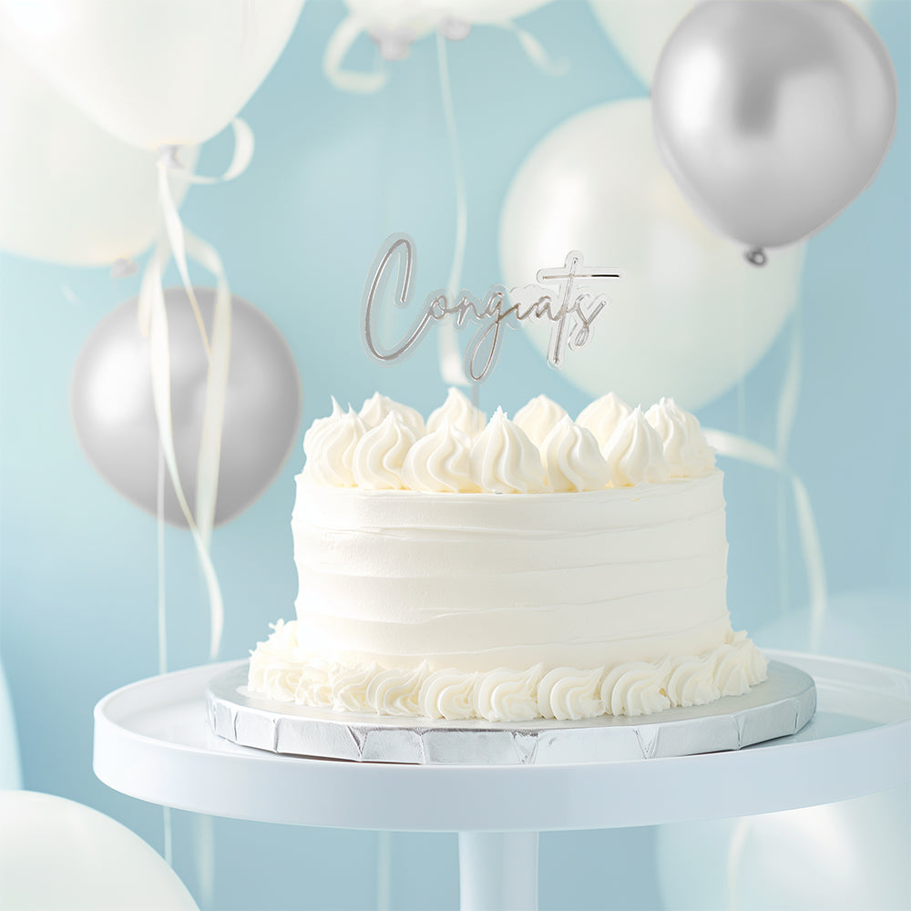 SILVER / CLEAR Layered Cake Topper - CONGRATS